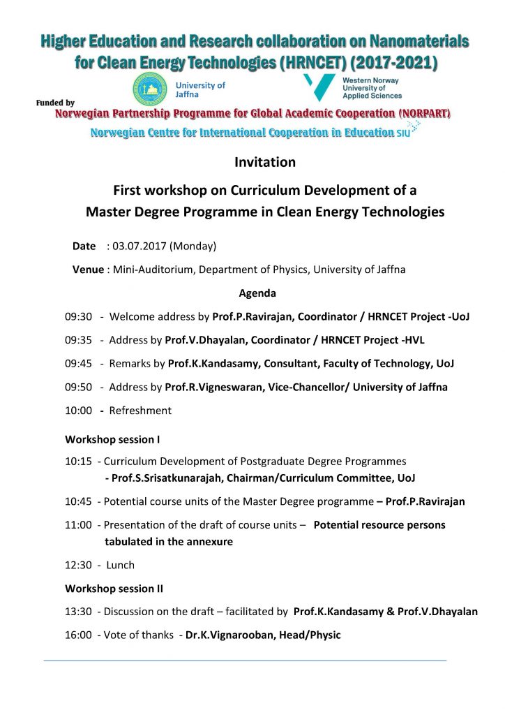 Venue : Mini-Auditorium, Department of Physics, University of Jaffna