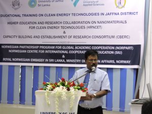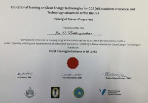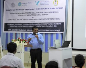 The Jaffna Science Association and Provincial Department of Education, Northern Province in collaboration with University of Jaffna and Western Norway University of Applied Sciences conducted  TOT programmes on November 18 & 19, 2017 to Science and Technology stream teachers, junior academics and final year undergraduates for providing educational training on Clean Energy Technologies to the school students in the Jaffna District.