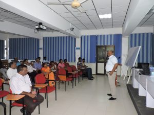On the same day, he had discussions with academics and research students at the Research laboratory, Department of Physics, and the Department of Chemistry. The meetings were mainly aimed for the future collaboration on Water Splitting and he encouraged the academic staff write concept paper for initiating collaborative research on Water Splitting for Clean Energy Applications. Both Physics and Chemical societies requested him to make presentation/lectures on Operating principles of Spectroscopic analysis.On the next day, he spent much time at the Research laboratory, department of Physics met with the research students, and discussed about their ongoing project work as well as preparing for the presentation on March 22, 2018. On March 21, 2018 he spent his time at the Faculty of Engineering, Ariviyal Nagar, Kilinochi and delivered a talk on “Quantitative determination of calcium hydroxide in concrete by Near infrared spectroscopy” organized under HRNCET project in collaboration with the Institution of Engineering Sri Lanka Northern Province Center and Kilinochchi Chapter . The talk was well received and it was beyond the expectation as more than 80 participants (staff, engineers and students) attended it.